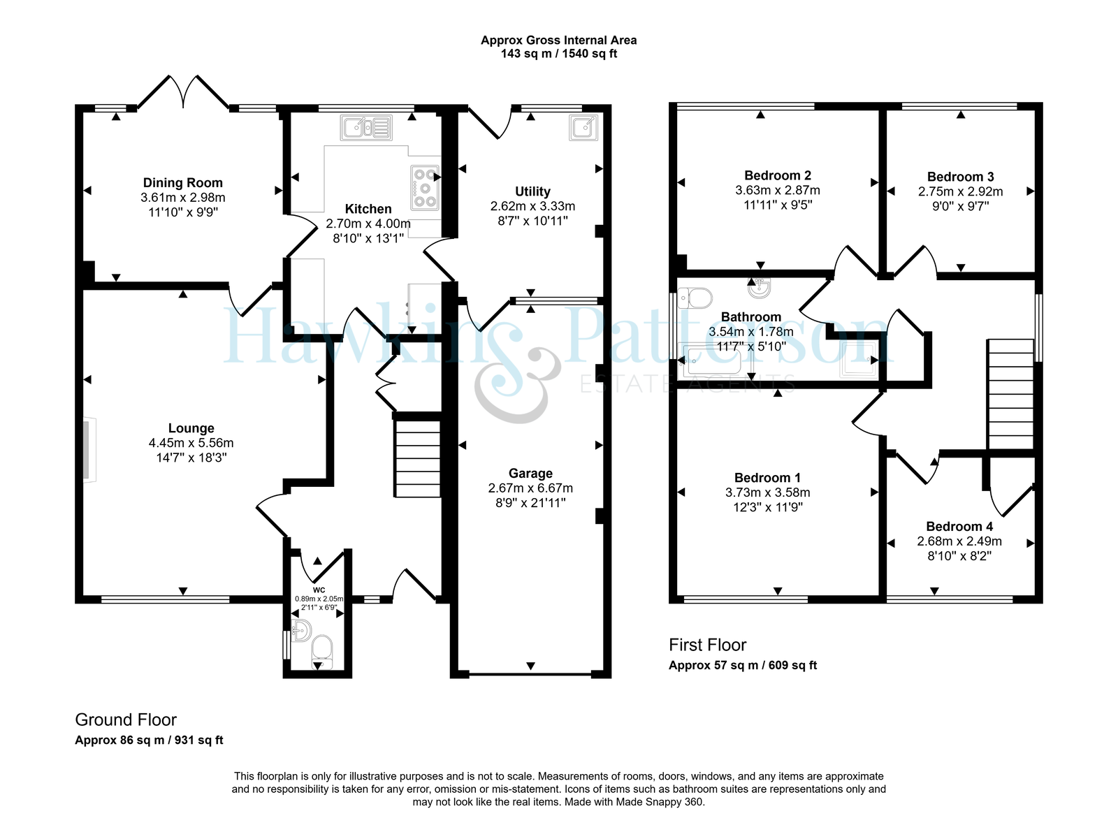 Double glazed window to side, loft hatch, shelved airing cupboard.