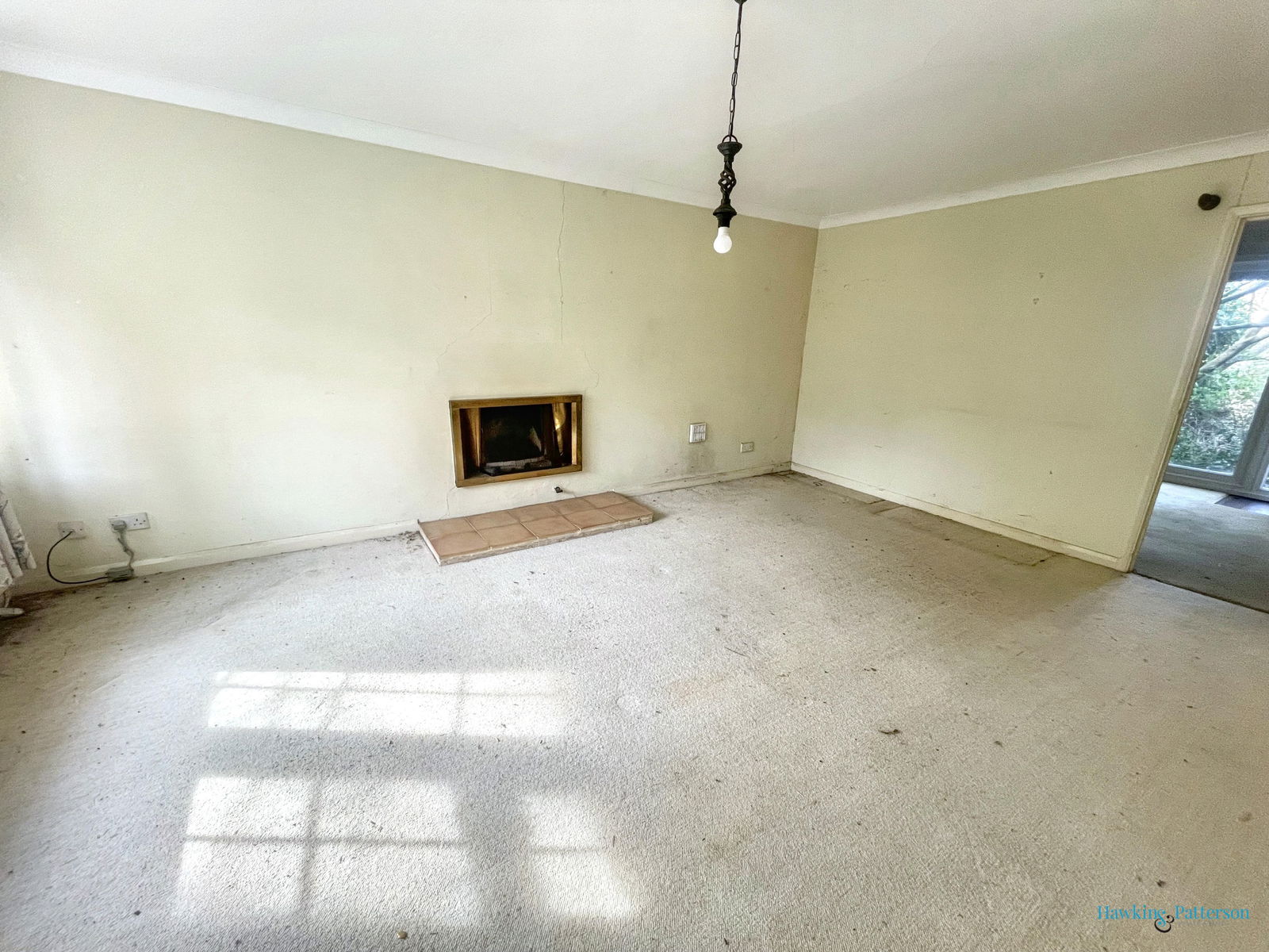 Double glazed window to front, radiator, gas point and tiled hearth, door to;