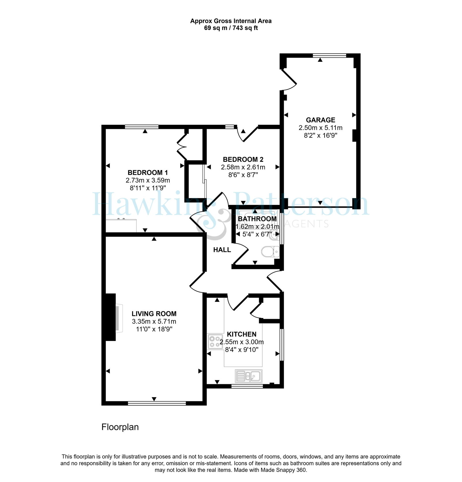 Up and over garage door, light and power, frosted double glazed window to rear and door to the rear garden.