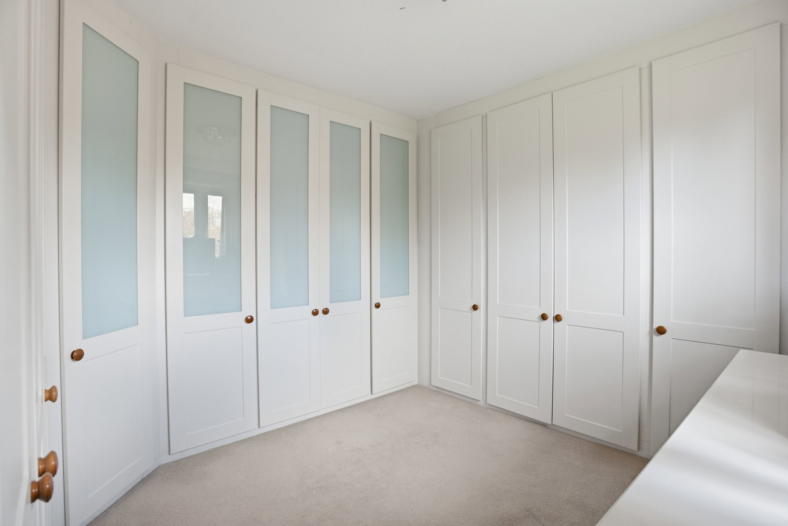 Coved cornice, radiator, double glazed window to front, built in double wardrobe and door to;