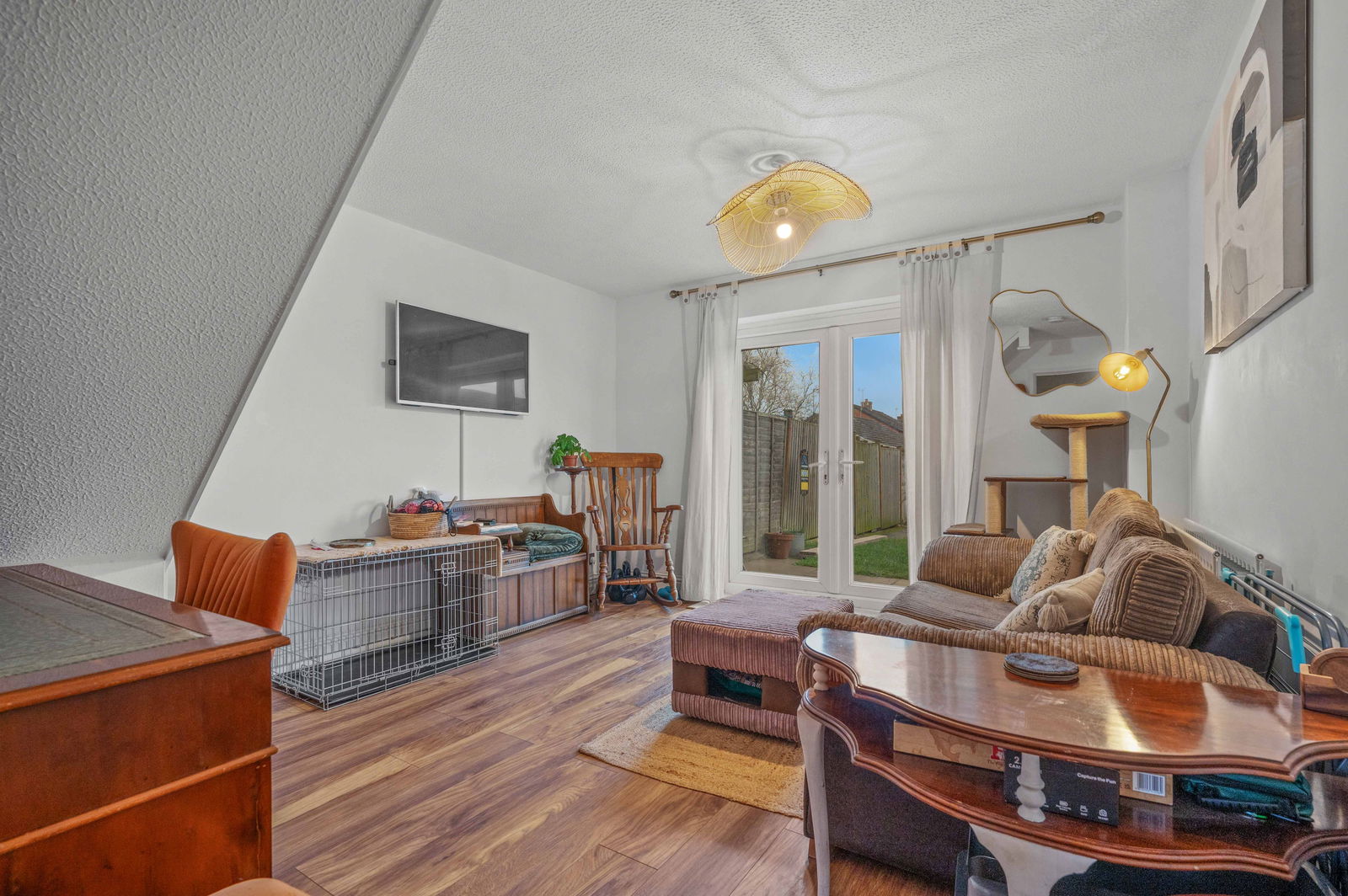 A well proportioned room with double French doors out to the garden.