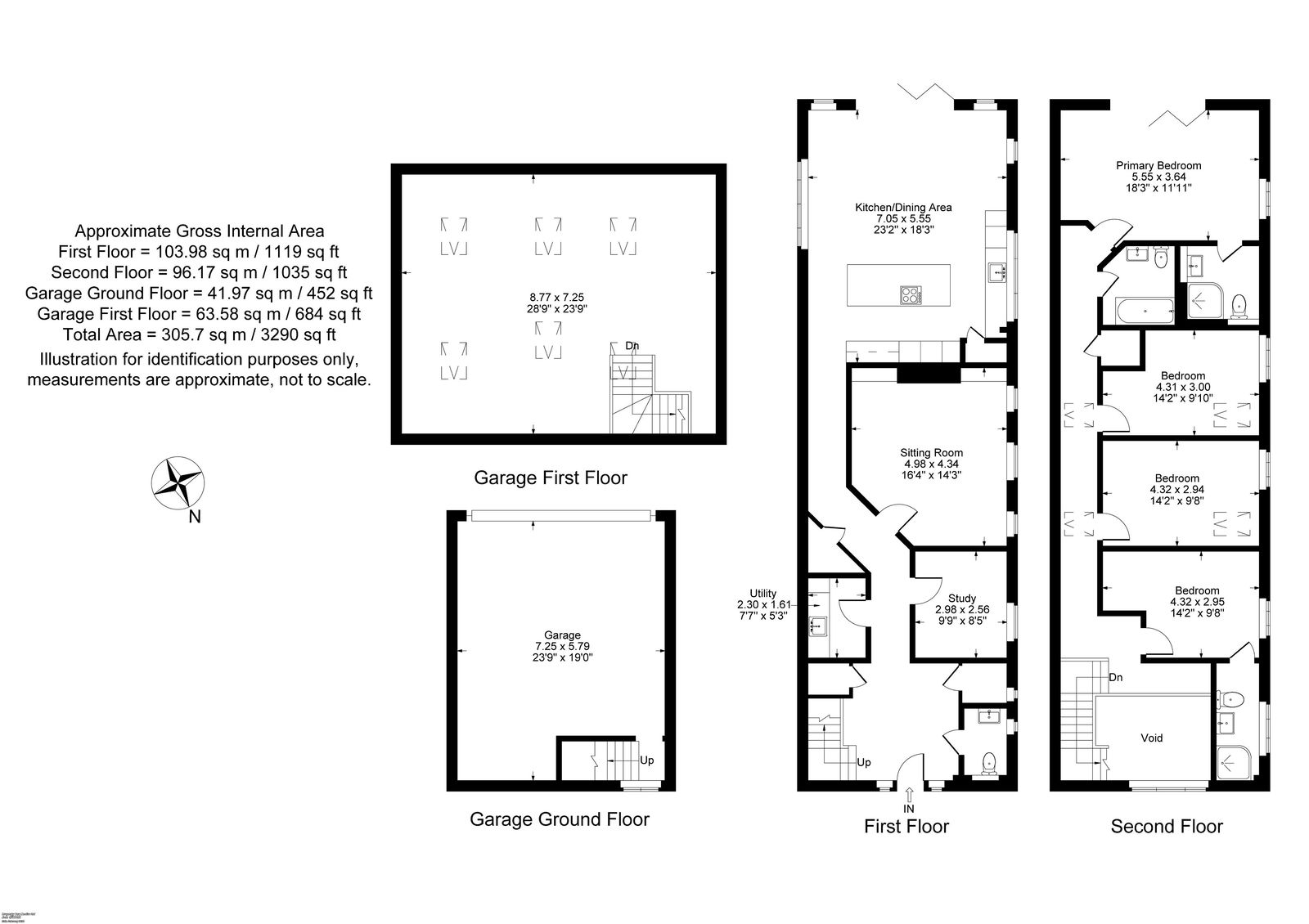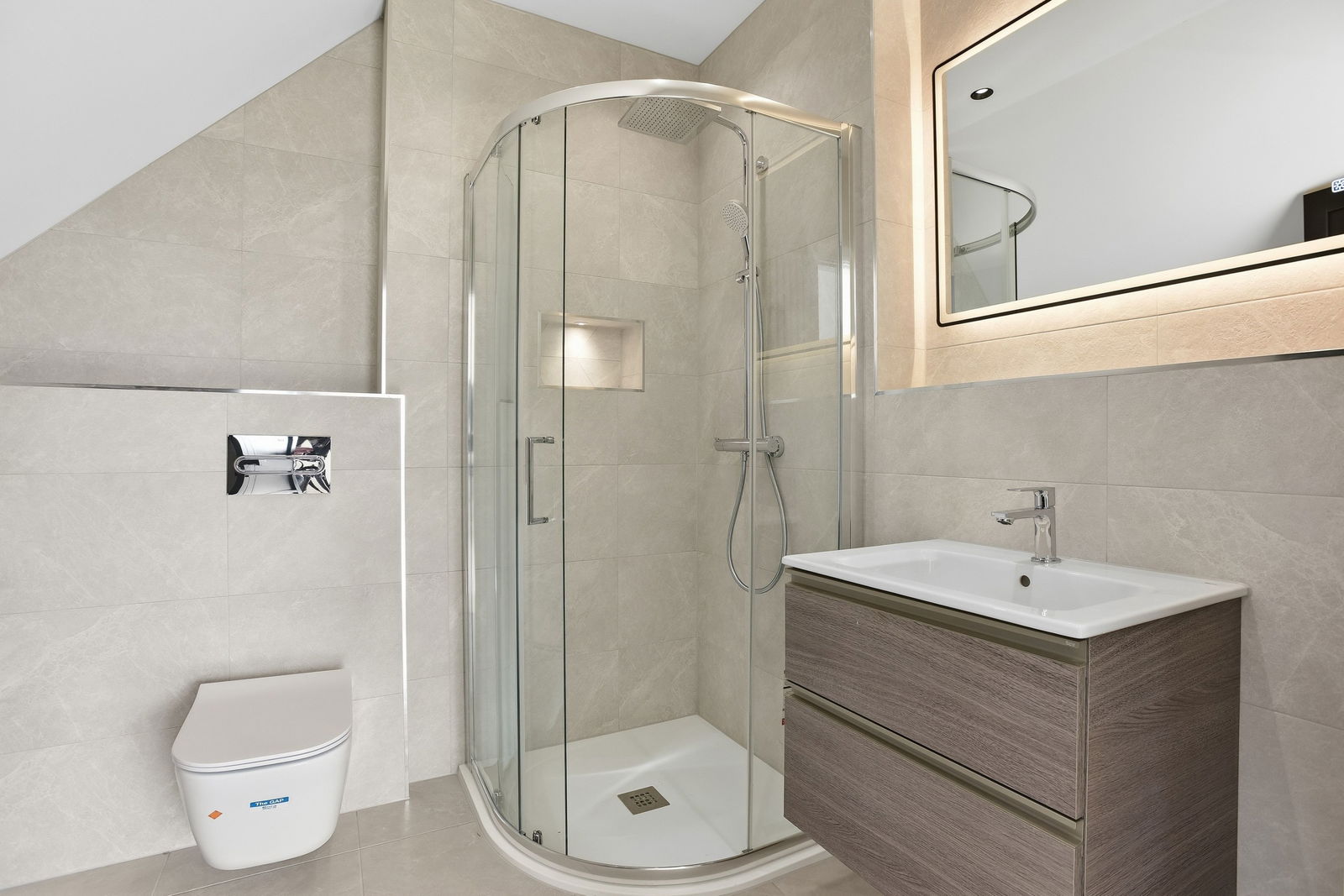 Upstairs, a vaulted landing with Velux skylight leads to the impressive principal suite, offering garden and valley views and a luxurious en-suite with rainfall shower and twin basins. Three further double bedrooms include an additional en-suite, alongside a beautifully appointed family bathroom.